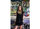Mikinové šaty oversized střihu se spadlými rukávy a zadním prodlouženým dílem. Jsou šité z teplákoviny, což z nich dělá pohodlný volnočasový kousek. Mají praktické skryté kapsy...